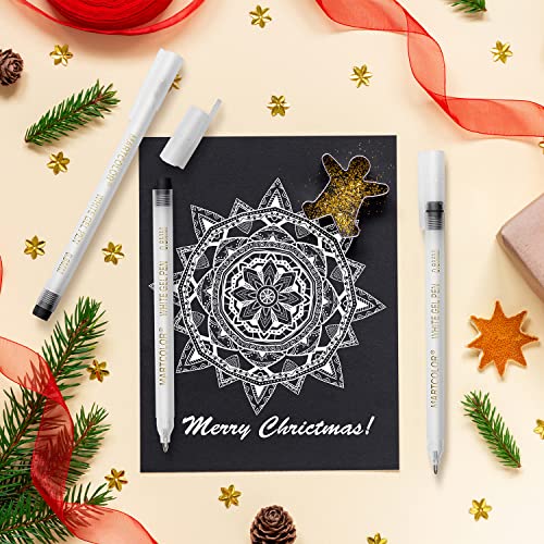 - FINE TIP WHITE GEL PENS: MARTCOLOR 0.8 mm fine point allows for detail drawing sketching coloring and illustration. Use these pens to add shines, glares, snow, highlights and more to your compositions, Create Boldly on Any Colour of Paper – The white ink dries quickly and opaque so your designs, writing or sketches will look bold on dark surfaces.