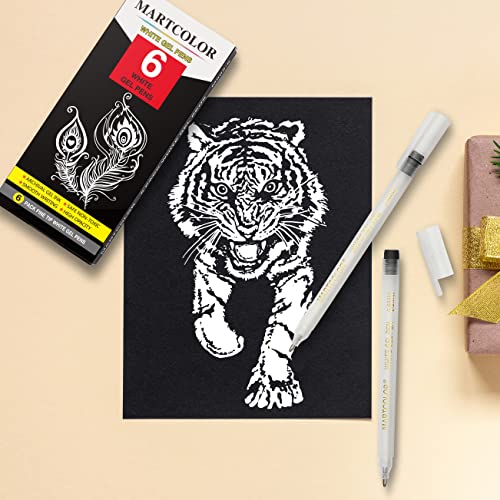MARTCOLOR White Gel Pens Set, 6 Pack, 0.8mm Fine Point Pens Gel Ink Pens For Artists, Archival Ink Pens, White highlight Pens for Black Paper Drawing, Illustration, Sketching, Writing
